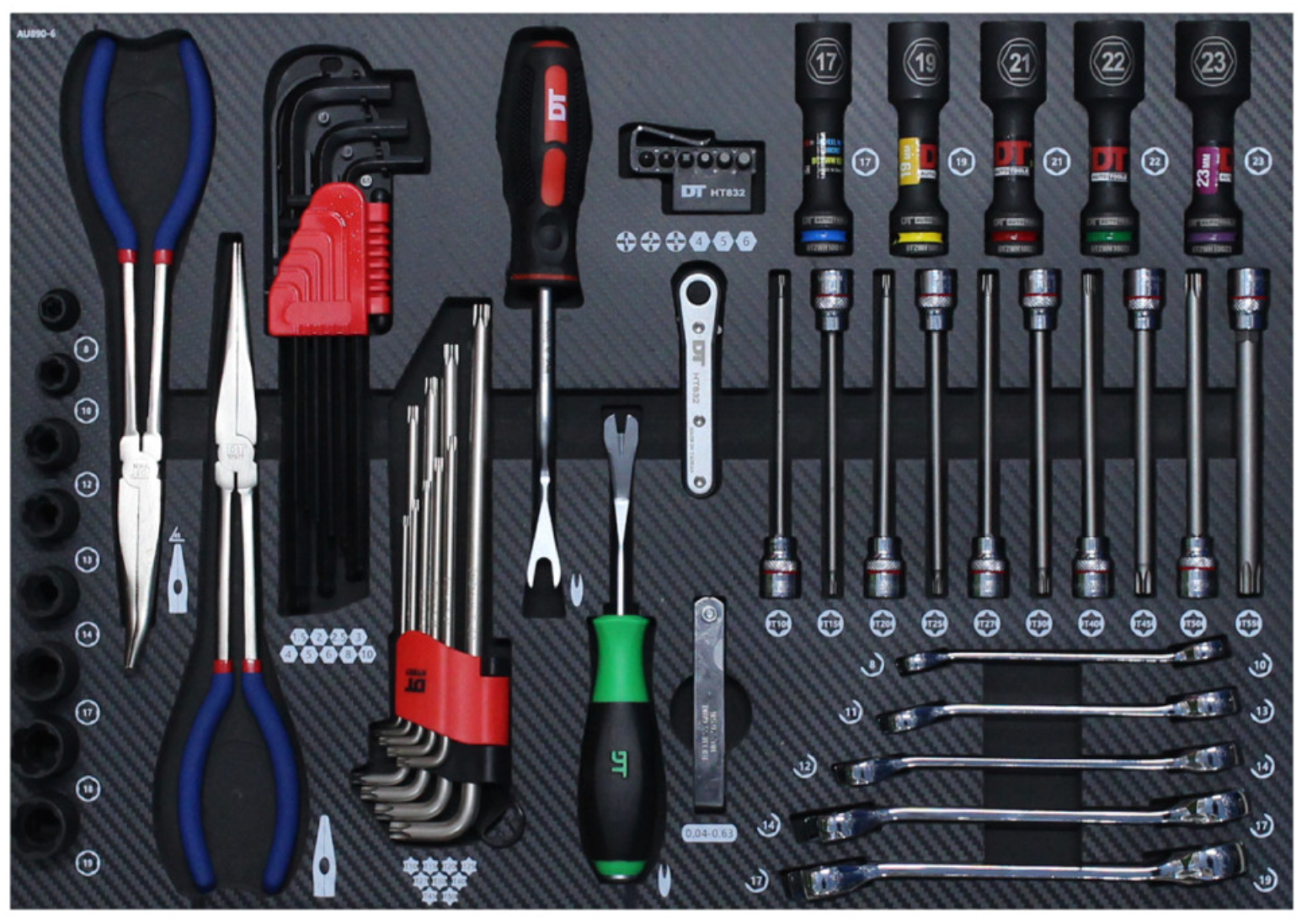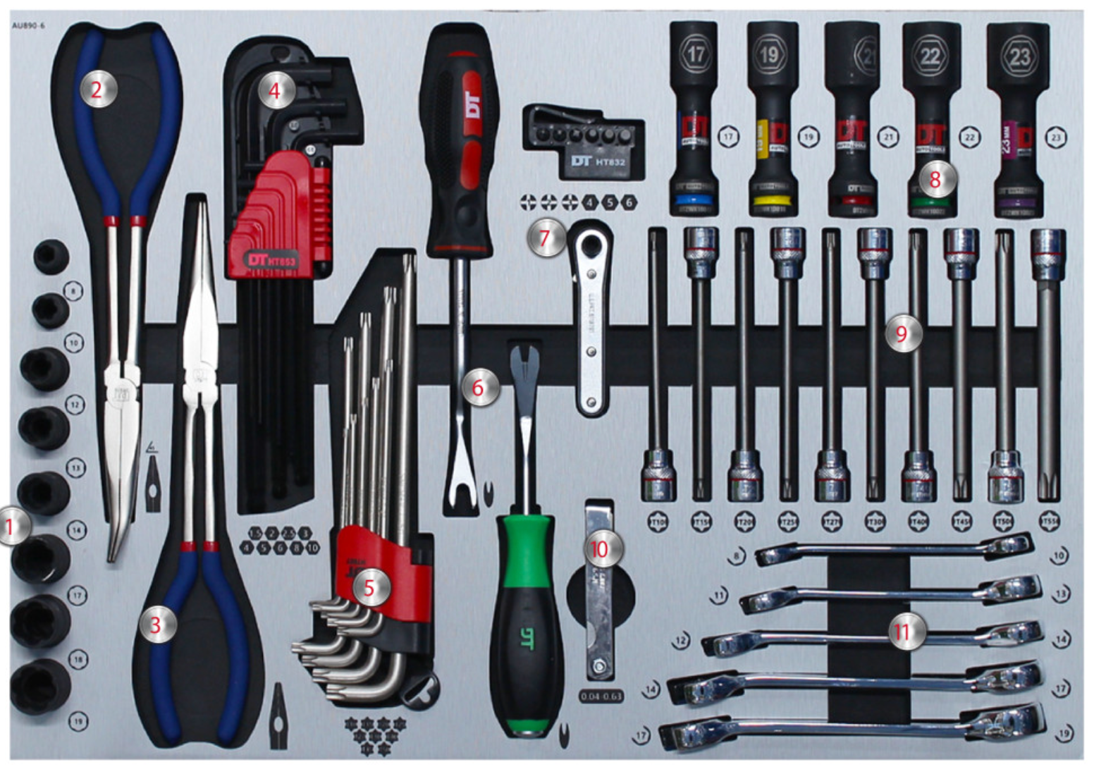 | 8 | 1/2" Hex Long Socket Set (100L) | 17, 19, 21, 22, 23mm | 5 |