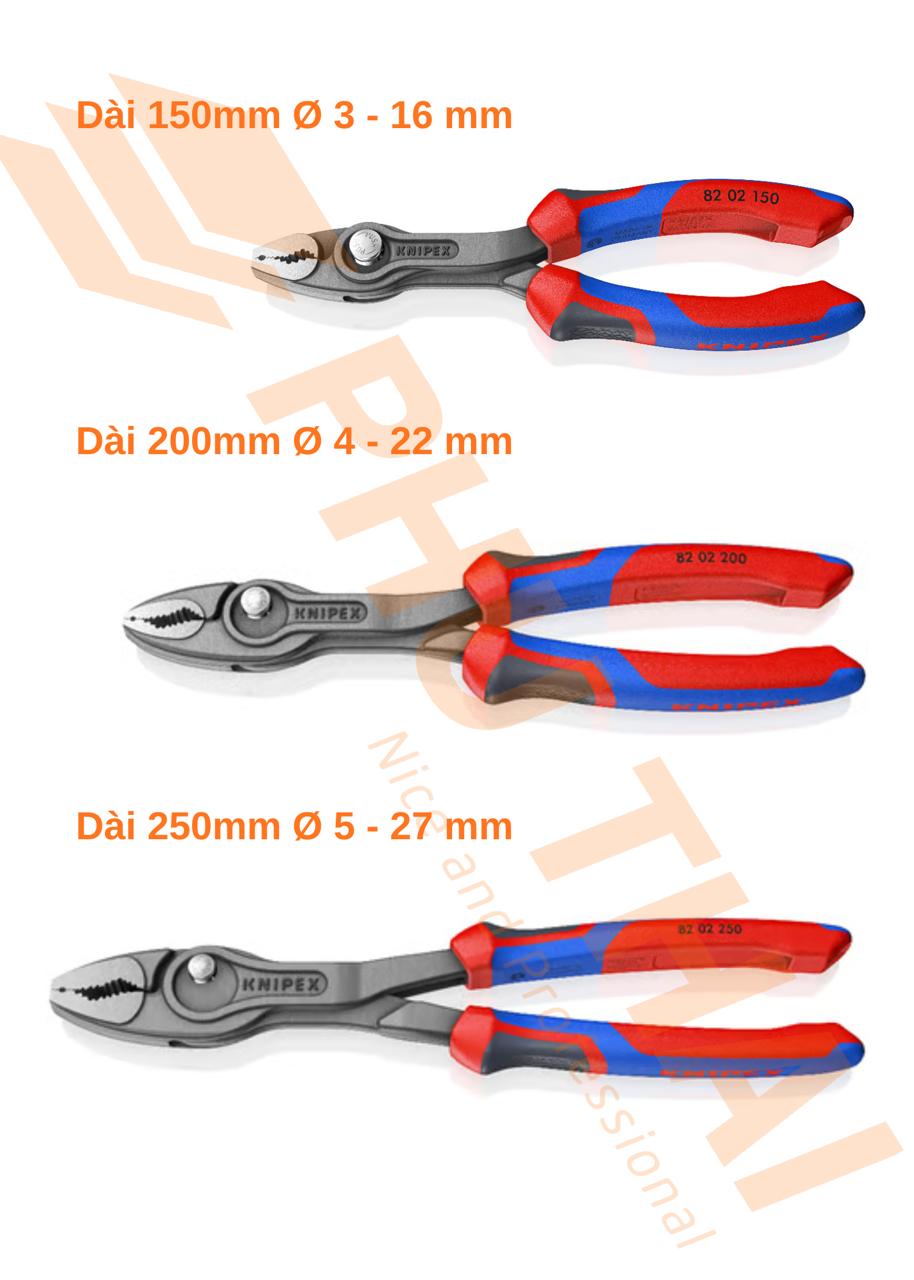 KÌM KNIPEX TWIN GRIP KHỚP TRƯỢT VỚI TAY CẦM NHỰA ĐA THÀNH PHẦN CÓ GỜ 82 02 200