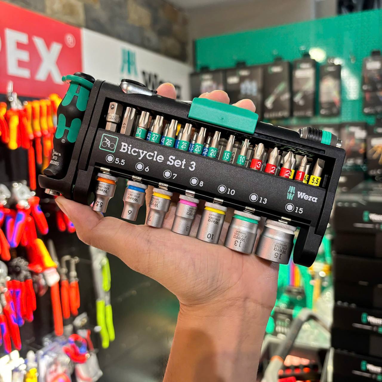 - Compact 41-piece screwdriving tool set for bicycle operations, also for mobile use