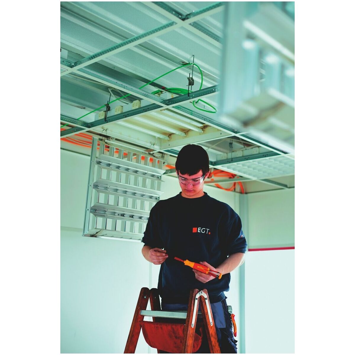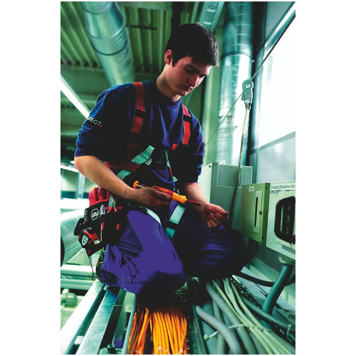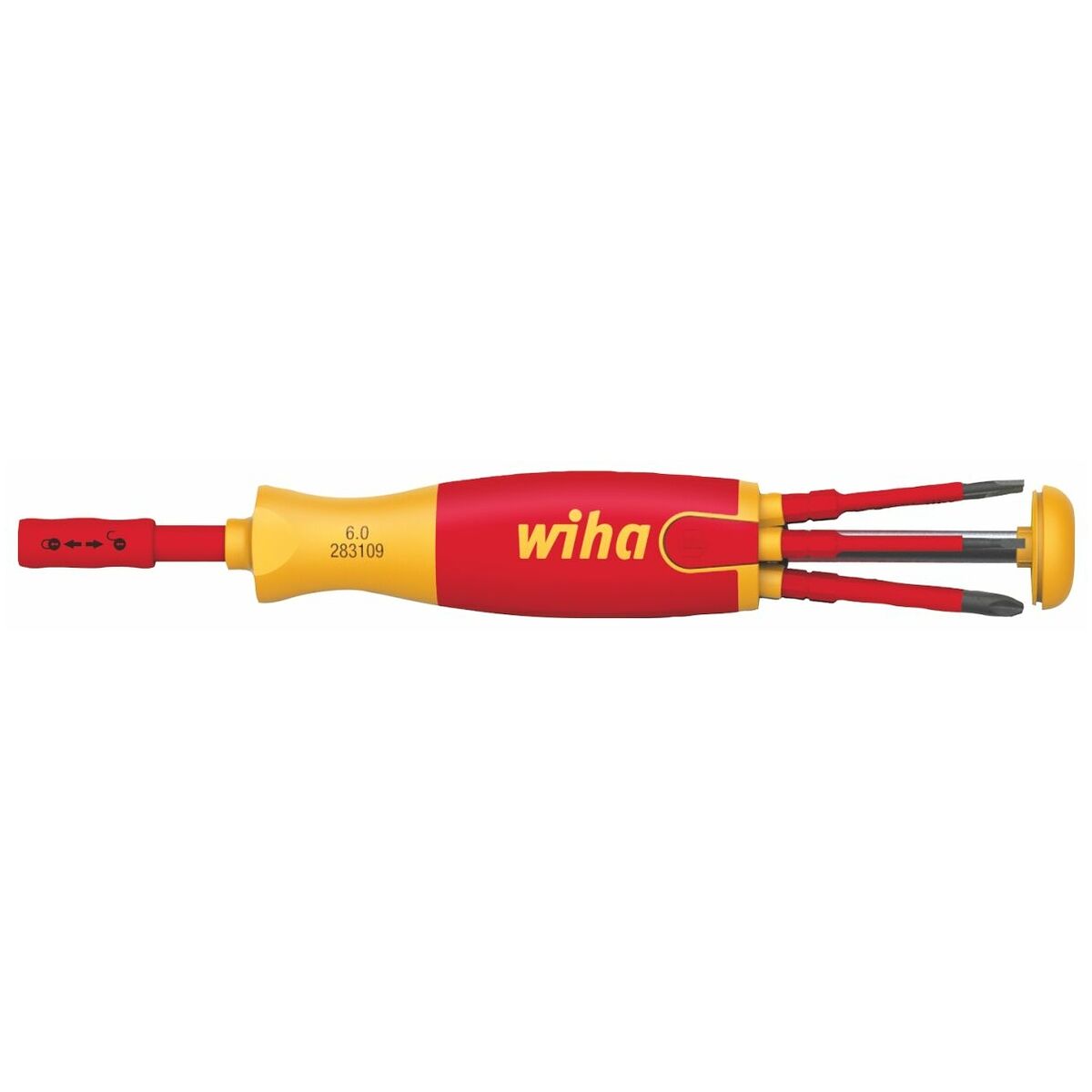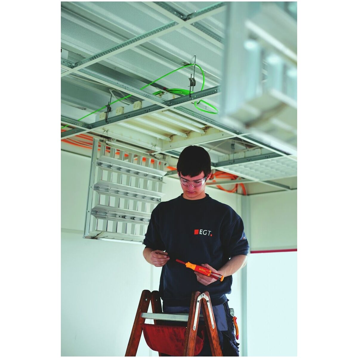 Handle and blade fully insulated up to 1000 V to DIN EN IEC 60900 / VDE 0682-201. The LiftUp electric bit magazine screwdriver is the ideal companion for any electrician when on the move. The bit storage in the handle offers space for 6 common slimBits and moves out of the magazine at the push of a button. This ensures that the bits can be removed easily. The proven ClicFix holder holds all bits securely and locks them reliably. This technology makes the bit magazine a universal screwdriver. The magazine bit holder also offers the maximum possible in terms of security. The metal bit holder holds all slimBits reliably.Increases your efficiency:
