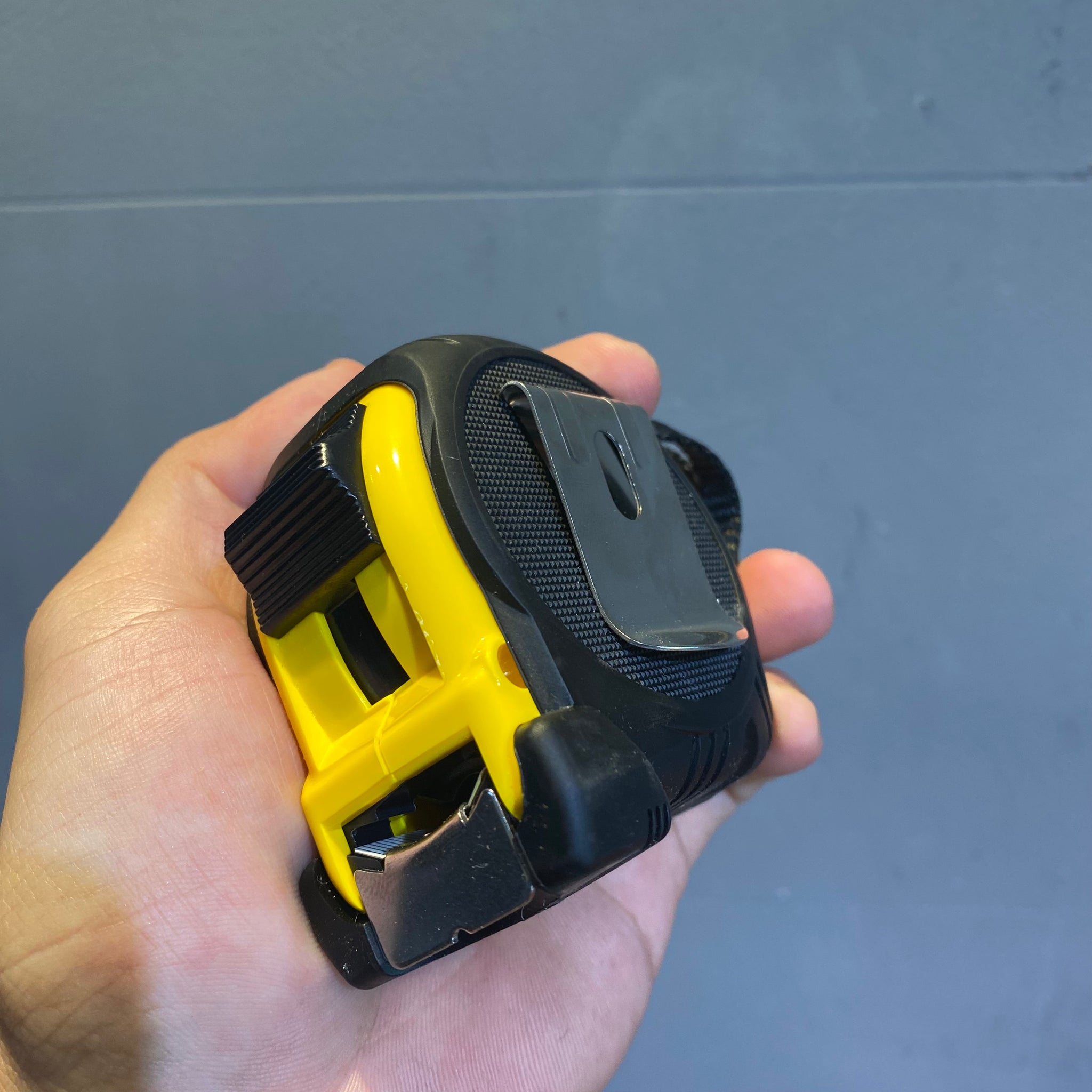 Tape with particularly high buckling stability. Totally shock-proof plastic housing with removable belt clip. Automatic tape return and stop. Shock absorber reduces load during tape return. Sliding end hook. Tape measure printed black/red on yellow, acrylic coated for high abrasion resistanceLong-lasting spring of high grade steel. Additionally with rubberized casing. Tape printed both sides.