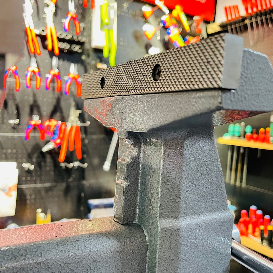 - Replaceable hardened steel jaws with a serrated pattern ensure grip and a long life
