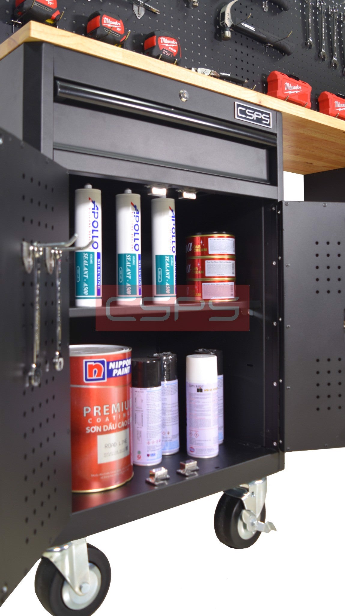 Bàn nguội cơ khí CSPS đen 183cm là một sản phẩm gồm 2 tủ dụng cụ tách rời trong bộ tủ dụng cụ lớn. Tủ được thiết kế để chứa dụng cụ, đồ nghề. Phù hợp với nhà máy, garage, cửa hàng. Bảo hành 02 năm toàn quốc. Tủ đạt tiêu chuẩn Mỹ được trang bị ray truợt bi và sơn tĩnh điện với độ bền lớp sơn lên đến 10 năm.