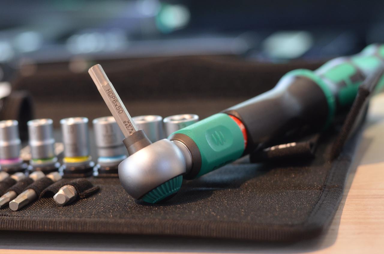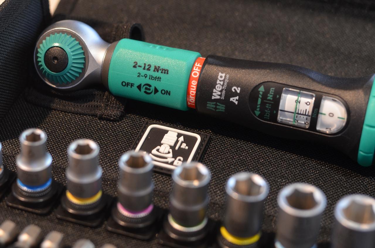 The special slipping trigger mechanism reliably prevents unintentional overtightening. Desired torque value is easily set and saved as the user can hear and feel the device engage upon reaching the scale value. The 72 fine-pitched teeth enable a low return angle of only 5°. With 1/4 inch bit holder. 23-piece set incl. torque wrench Safe-Torque A 2.Advantage: