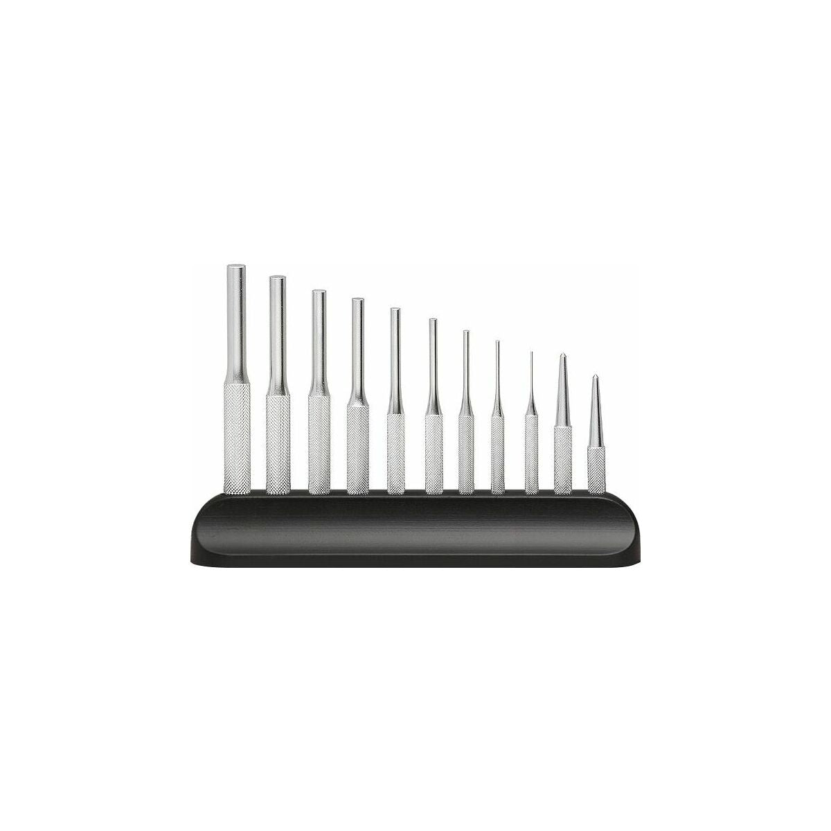 Round steel, exceptionally slim and handy. With knurled shank. Through hardened, head specially annealed to prevent splintering. Highest possible tip hardness (approx. 59 HRC) with exceptional toughness. Actual ⌀ 0. 05 - 0. 5 mm less than nominal ⌀, prevents the pin punch jamming in the hole.Material:
