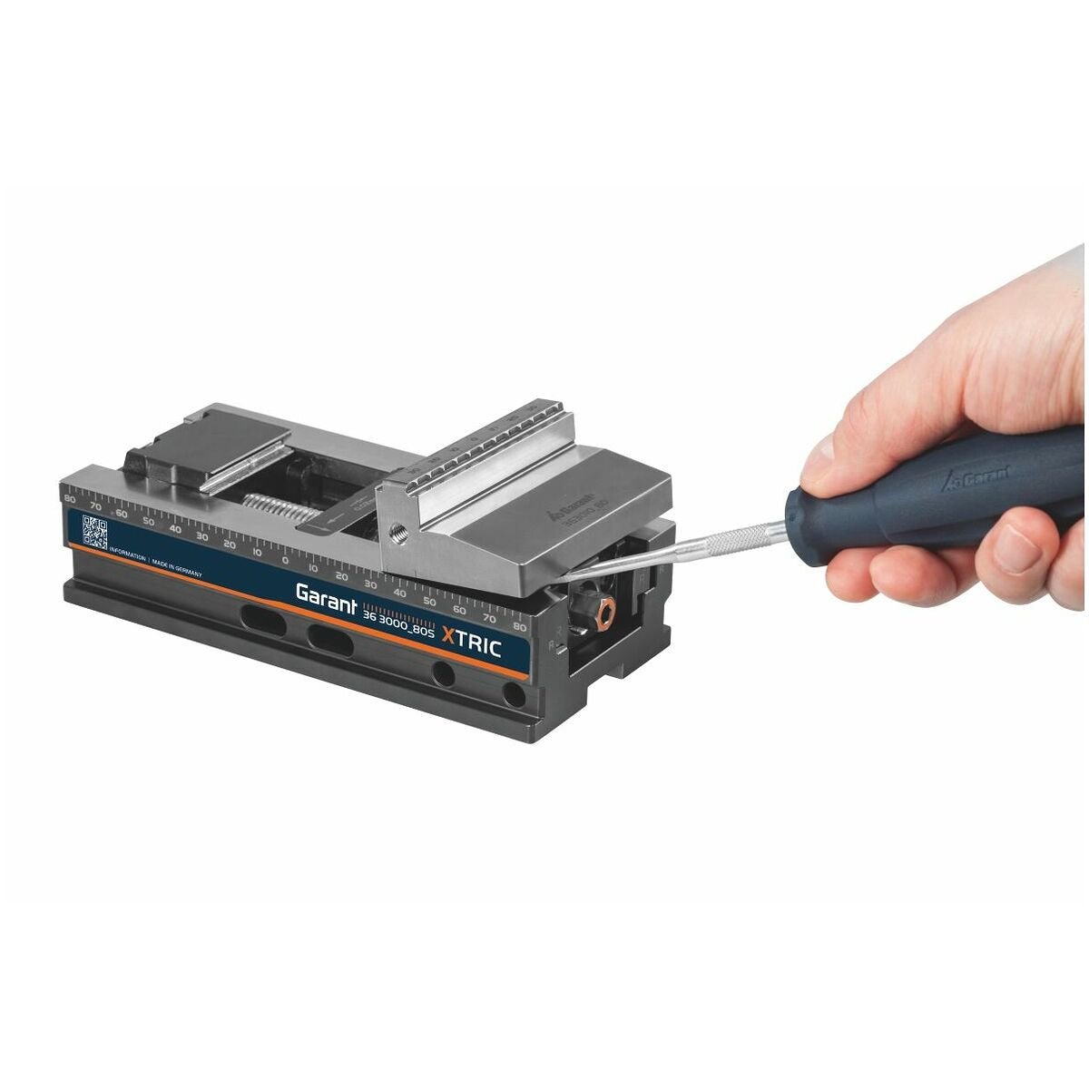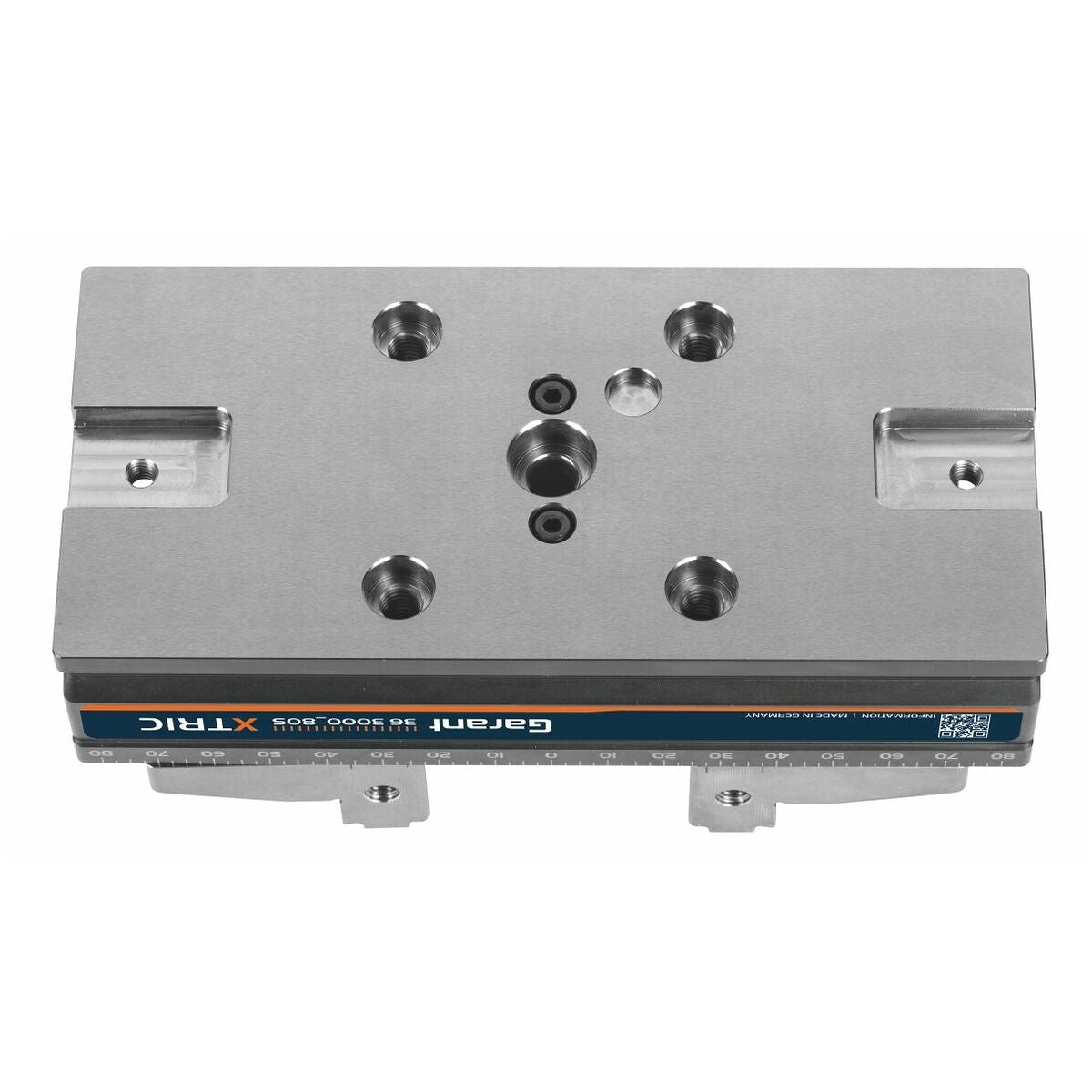Very good accessibility and perfectly symmetrical. Fully hardened and precision milled on the underside. Central alignment delivers perfectly centred clamping. Clamps raw materials and finished parts with the least possible backstroke of the jaws / component. Supplied with holes for LANG positioning system, can be adapted to GARANT ZeroClamp and Erowa ITS148 (size 50 and 80) using an intermediate plate. Jaws can be changed without using tools. Changing the jaws may result in a change of clamping capacity. Interface for automated applications. Easy-to-use, chuck jaw quick-change system, no tools required. Clamping force up to 25 kN at 90 Nm torque. Quick to use and intuitive in operation. Repetition accuracy <0. 01 mm. Scaling for pre-positioning the clamping modules. Spindle nut with or without pivot function. Clamping lip for clamping claws. Centring adjustment with pin wrench.Application: