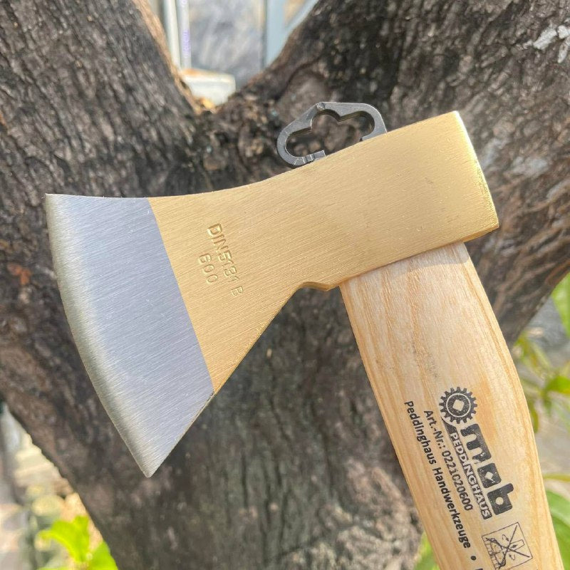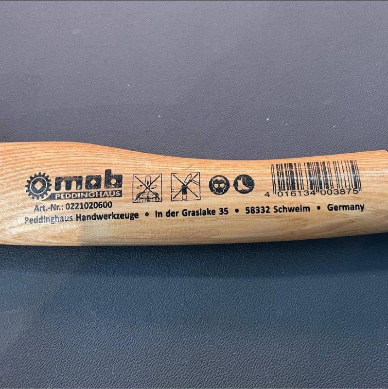 Drop-forged. Hardened and ground cutting edge. Shaped ash wood handle.Material: