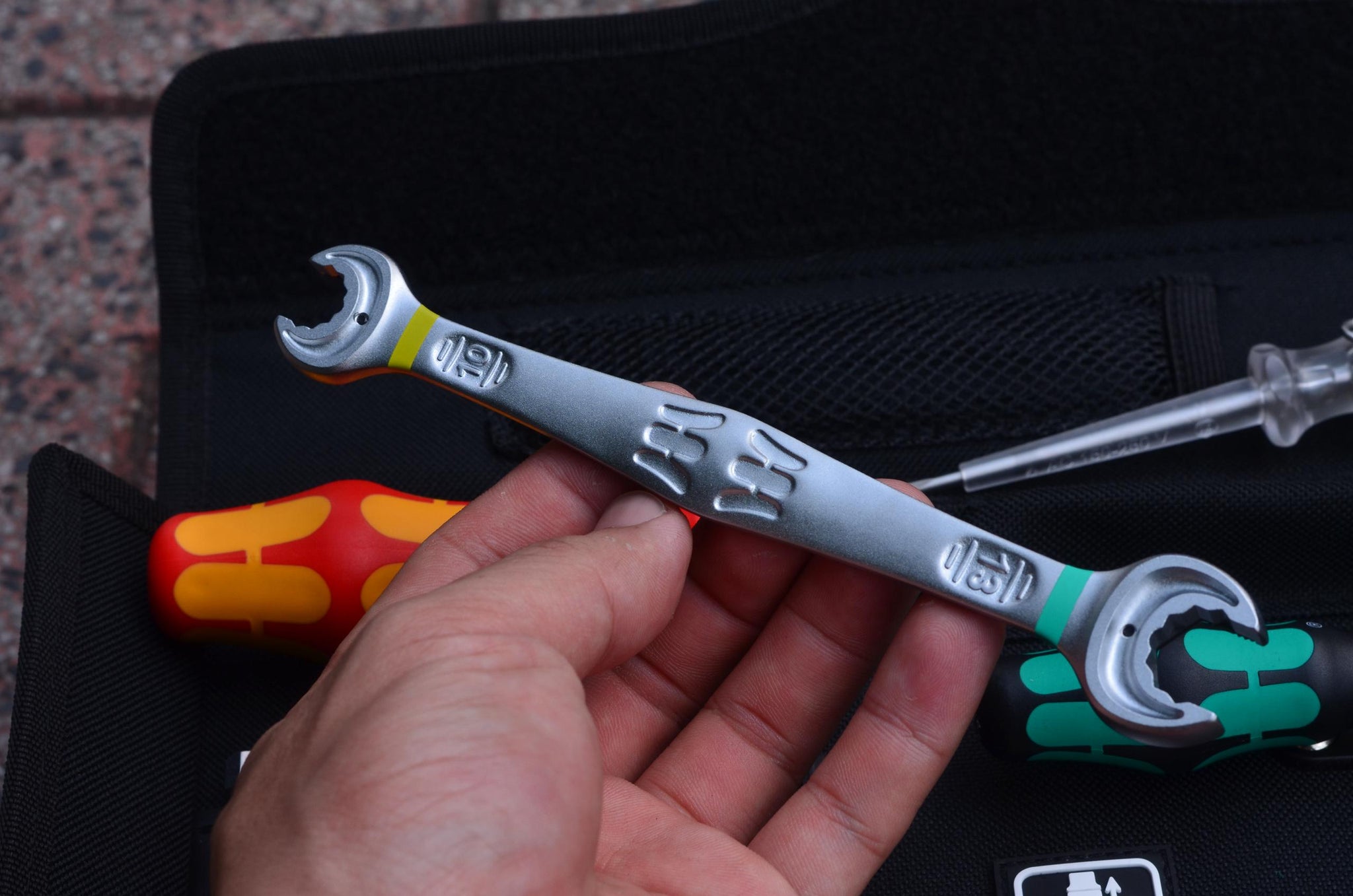 Kompaktes Werkzeugsortiment mit den wichtigsten Werkzeugen für Wartungsarbeiten im Innen- und Außenbereich.Inhalt: