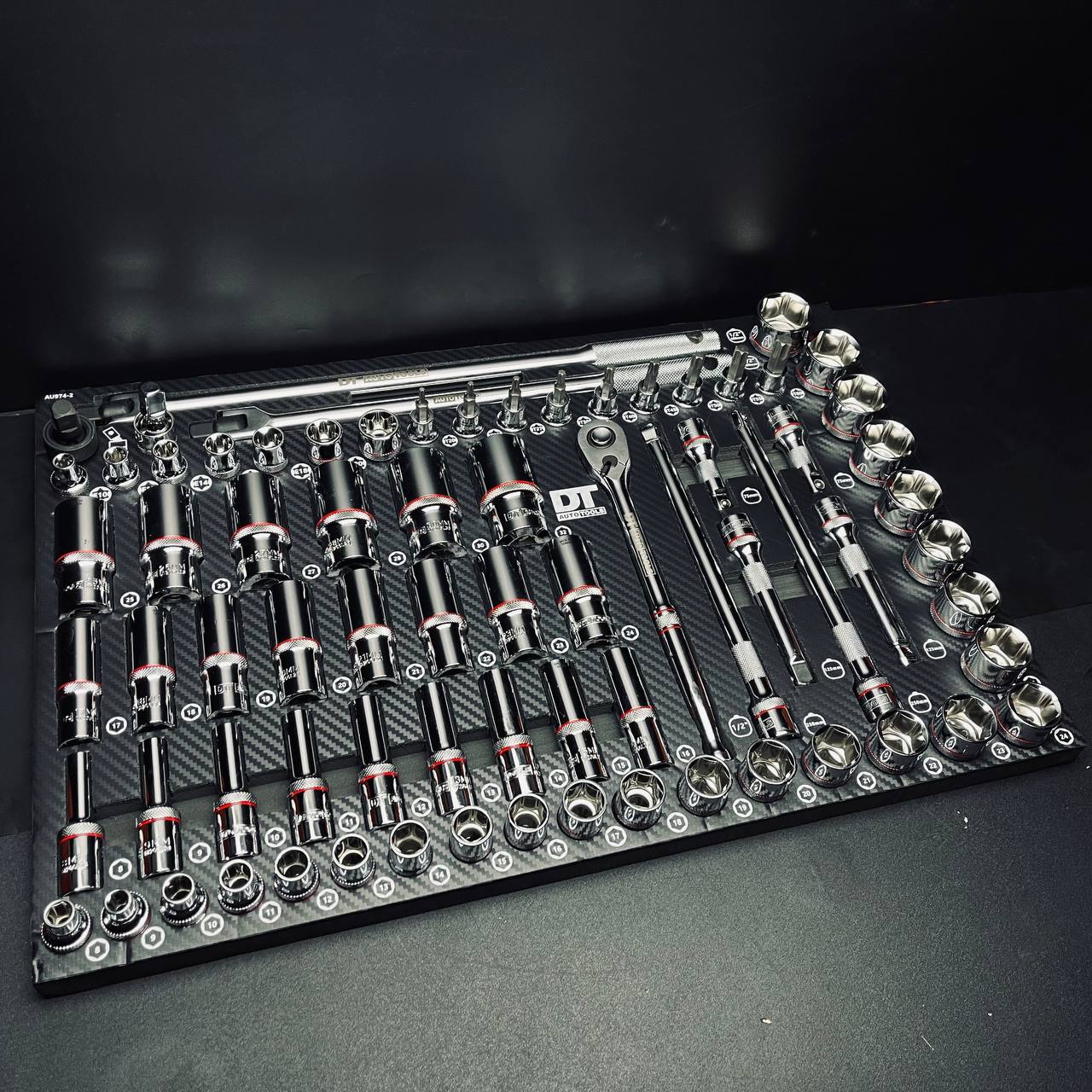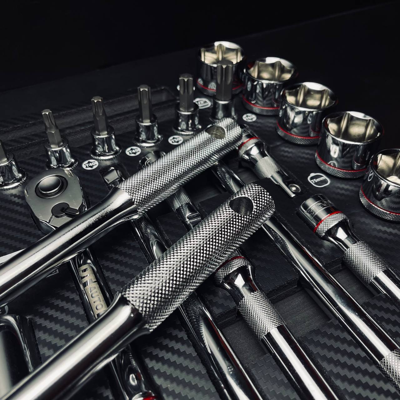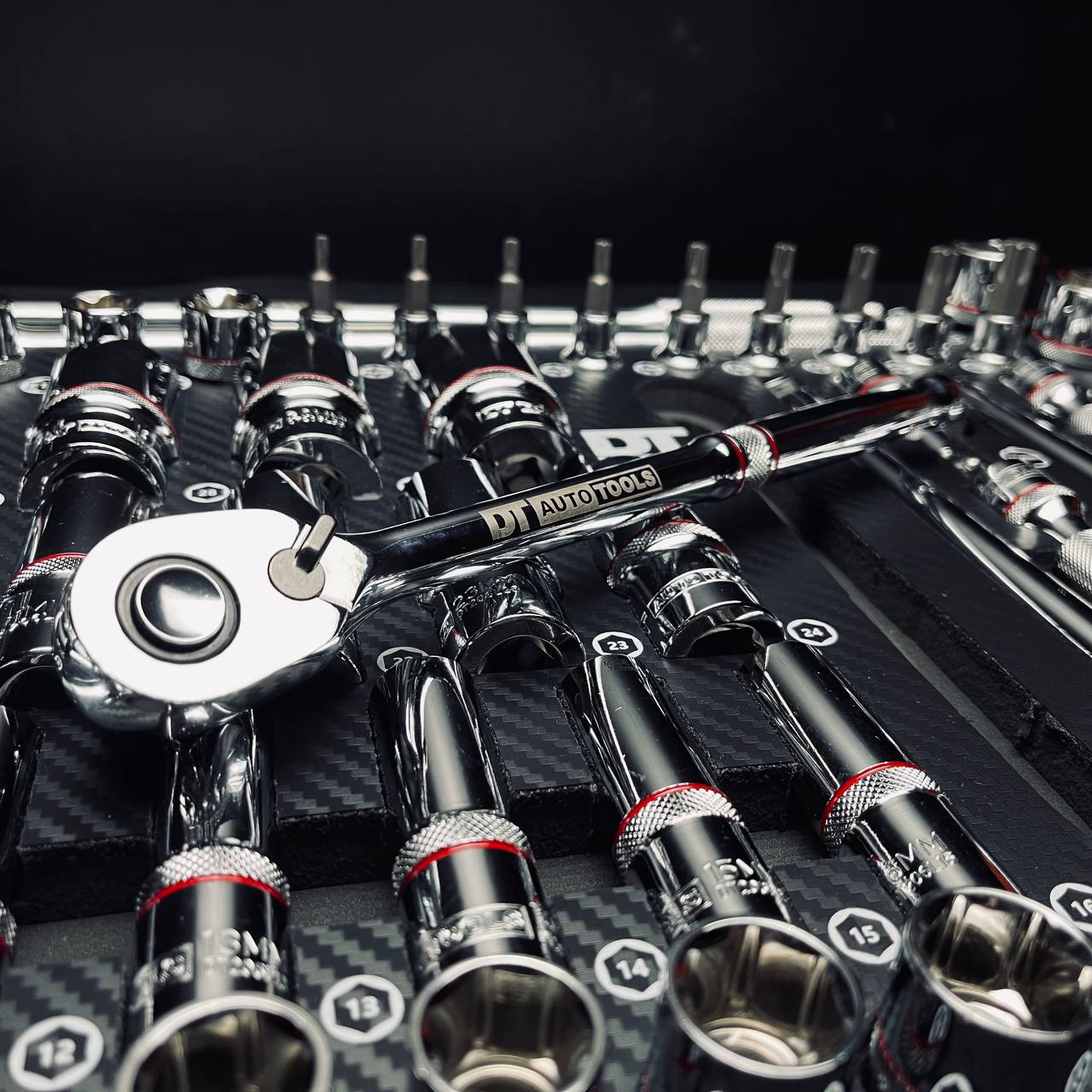 ✅ This drawer is mainly a 1/2" drive socket set including breaker bars, star sockets, Torx sockets, long & short sockets, ratchet, and extension bars.