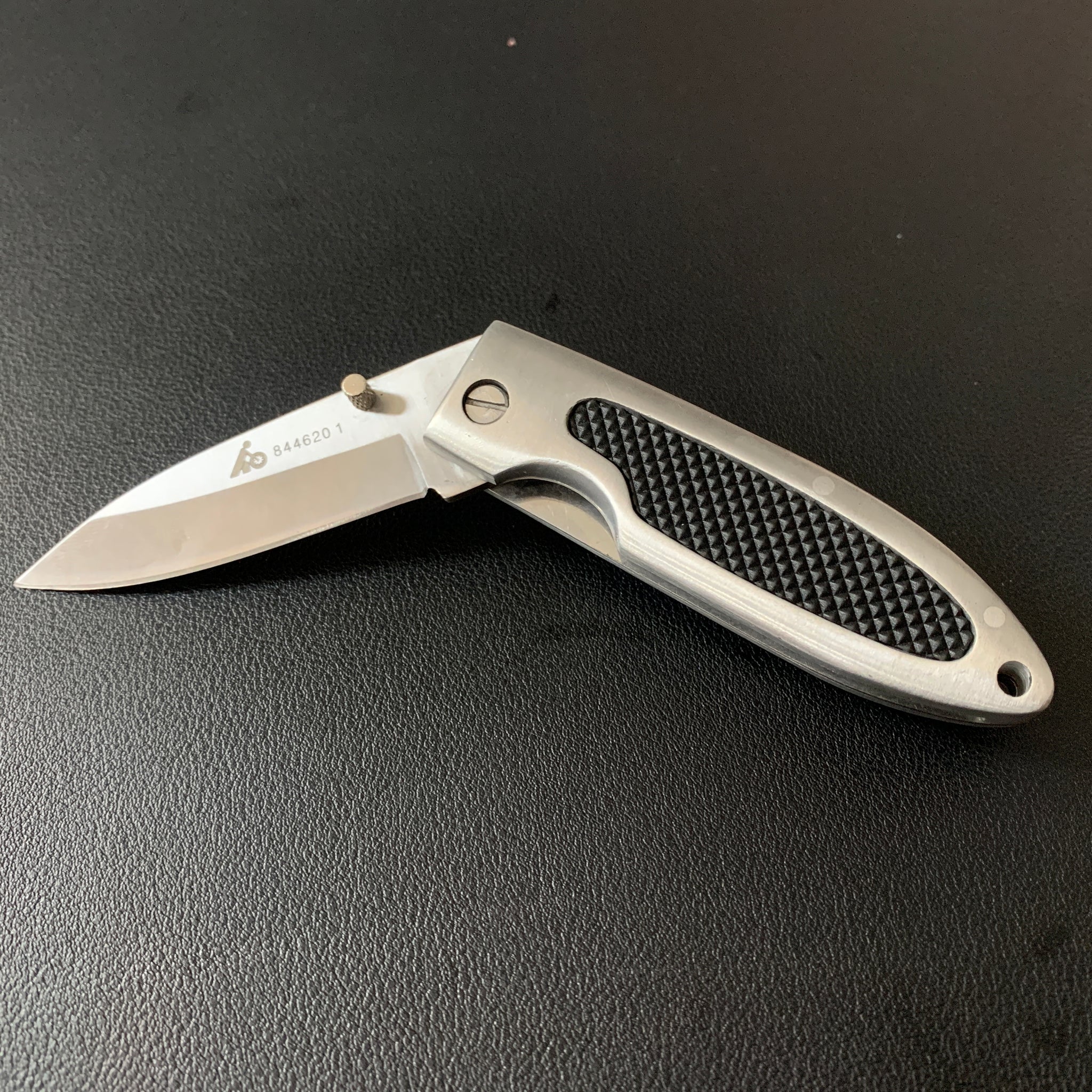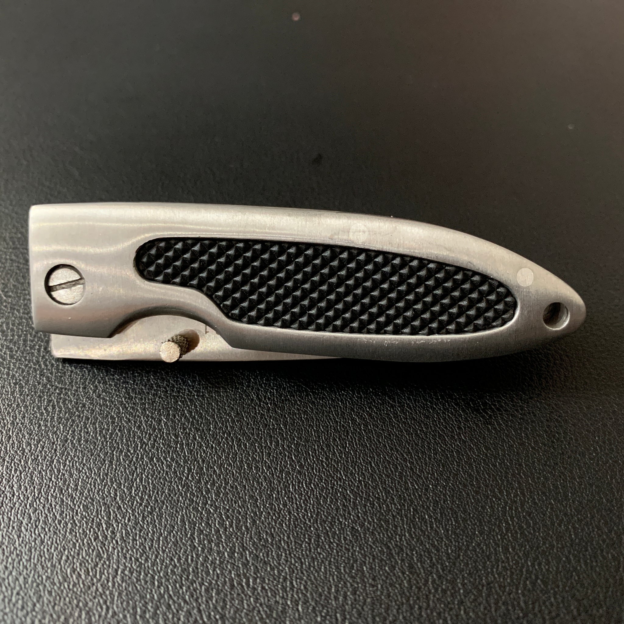 Lockable single-hand knife with stainless blade. Handle of aluminium with non-slip inlays and clip.Advantage: