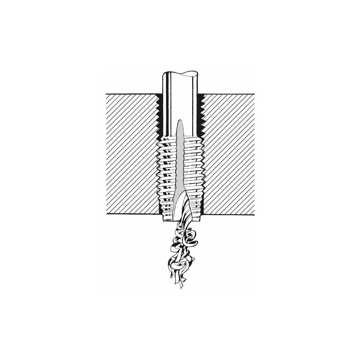 Particularly sturdy design. Guide section with oil grooves, but without chip flutes. Lead chamfer form B, with strong spiral point. Size M2. 6 to the old DIN profile.Advantage: